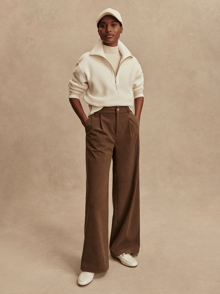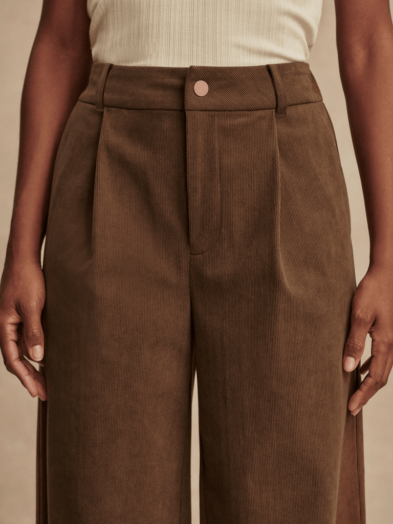 The Rocio is cut to a flattering shape with a fitted waist, wide leg, and pleat details at the waist. Crafted from our finely textured Needle Cord, it's a perfect transitional choice that offers structure, softness, and breathability. In addition to the functional side entry pockets, it has mock welt pockets at the back. Complete with belt loops, a waistband that's elasticated at the back, and a snap and fly front fastening.