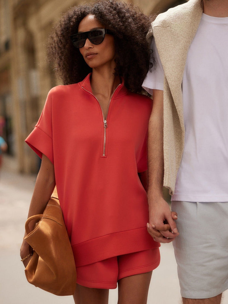 Designed for a relaxed fit, the Ritchie sweat offers effortless style with its short sleeves and comfortable cut. Featuring a mock neck and convenient half-zip, it pairs with our matching shorts and pants.
