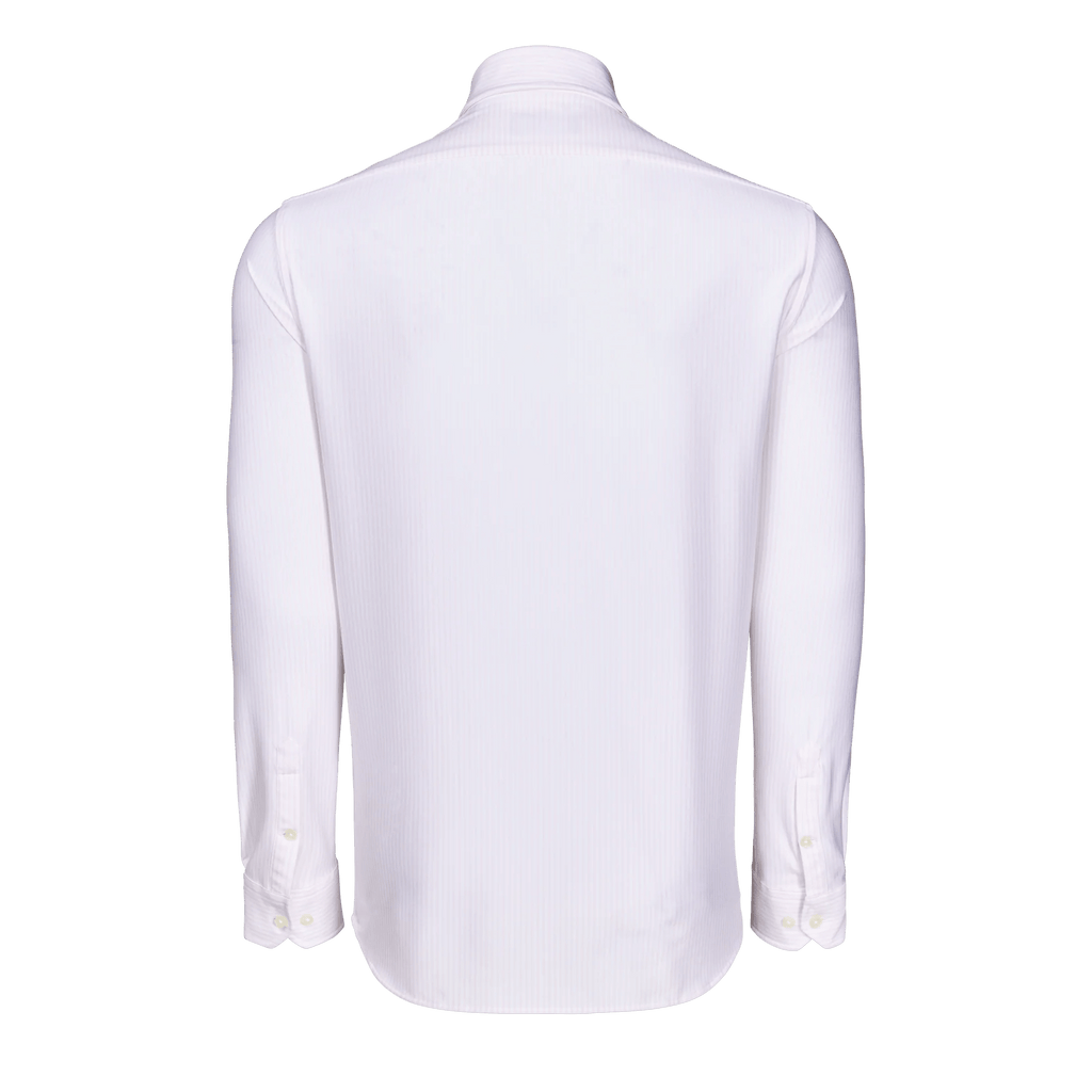 The Birmingham Bengal Striped Knit Shirt is a refined update to a classic essential, distinguished by its bold Bengal-inspired stripe that adds depth and character to a timeless silhouette. Designed to be dressed up or down, this elevated knit button-down is crafted from a lightweight, luxurious blend of cotton and elastane for a soft, textured feel with enhanced stretch and breathability. The knit construction delivers all-day comfort and ease of movement, while a spread collar, engraved mother of pearl buttons, and mitered cuffs provide a polished, tailored finish suitable for any occasion.