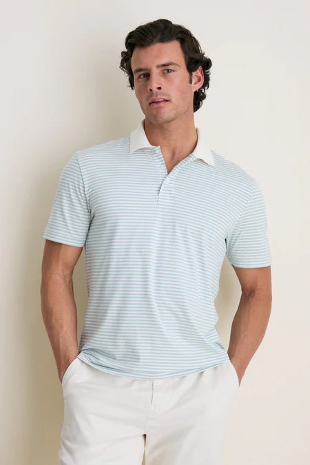 Faherty Short-Sleeve Movement Pique Polo - Beach Fog Stripe