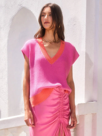 Nation Yvette Mock Neck Tee / Jet Black Color Block