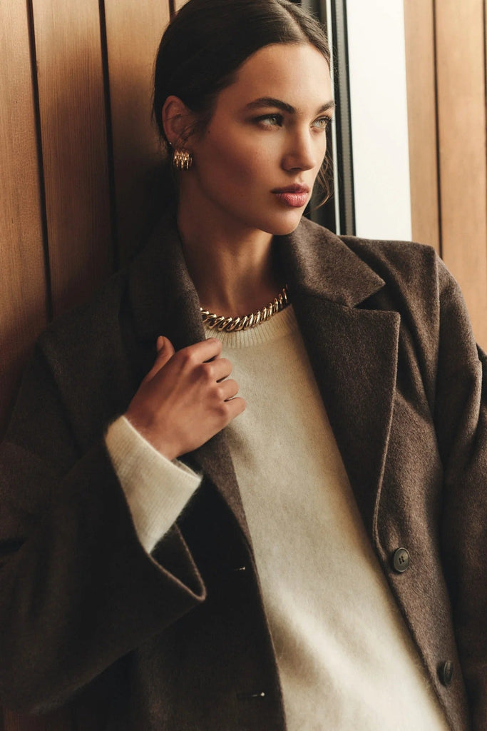 Timeless and sophisticated, this wool-blend coat features a classic lapel collar, front slash pockets, and a fully lined interior for a polished finish. Designed with clean lines and a tailored silhouette, it’s a versatile outer layer that elevates any look.