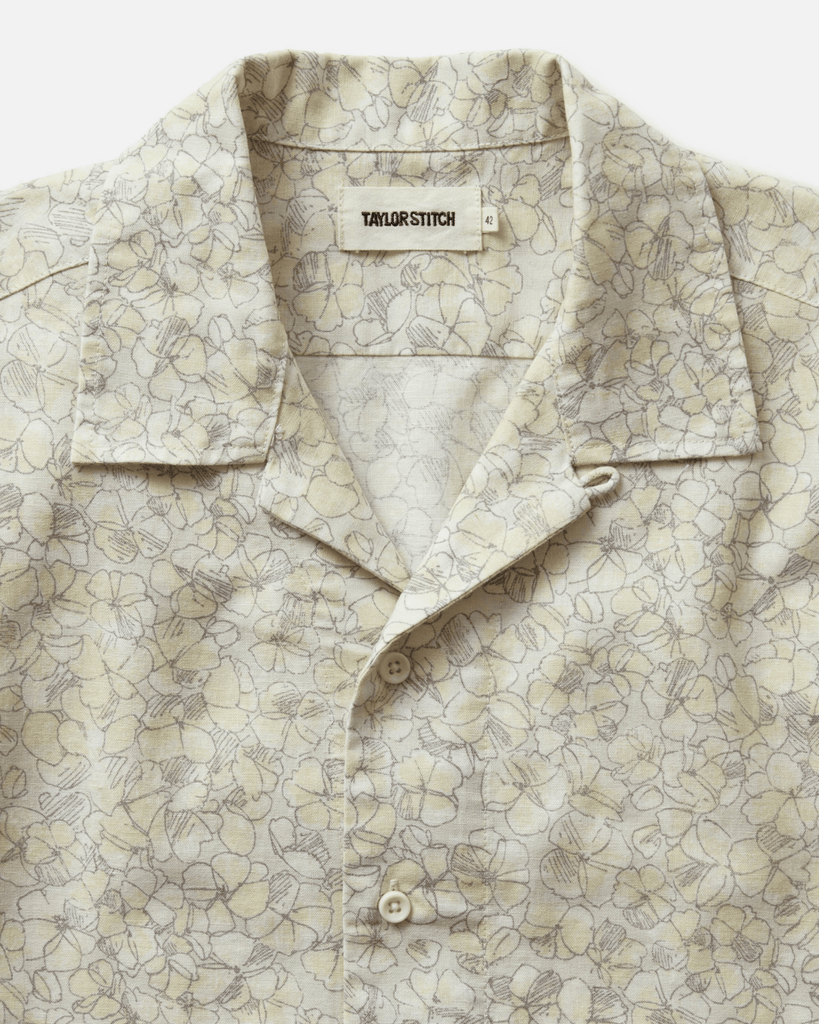 Retro-inspired camp collar shirt in an airy linen and organic cotton blend.