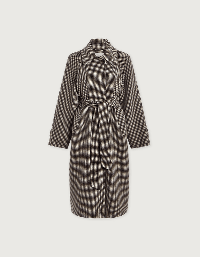 Varley Tomlinson Belted Long Coat / Deep Taupe & Sandshell Micro Puppytooth