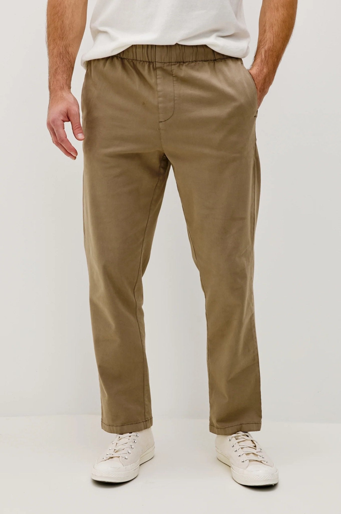 A relaxed take on slim fit, the Julian is complete with an elasticated waist and welt back pockets. Made from a sueded stretch cotton, and garment-dyed for a lived-in look, the Julian pairs perfectly with any shirt or lightweight sweater.