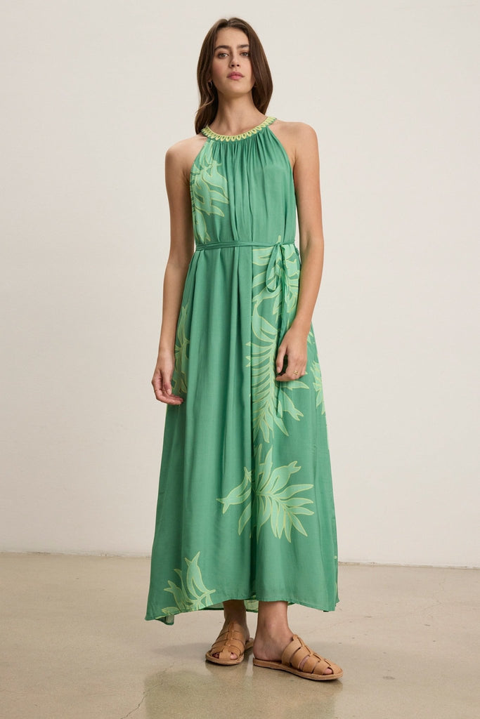 Velvet Odessa Palmetto Print Dress / Green